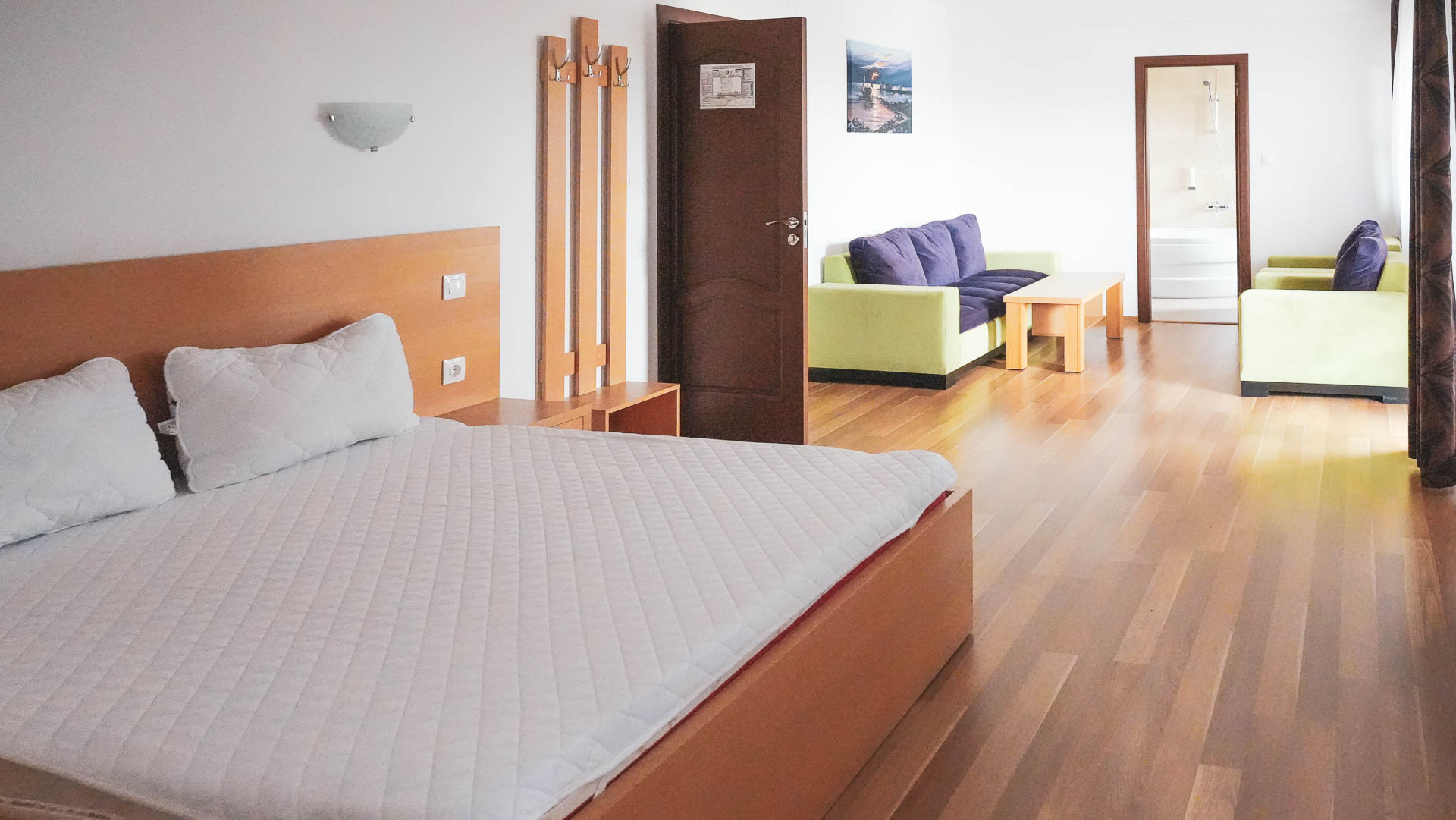 Camerele sunt spaţioase şi elegante, cu elemente de design modern dotate cu: sistem de climatizare, cablu tv cu pachet de peste 130 de programe, internet wireless, minibar, balcon și băi foarte bine echipate.
